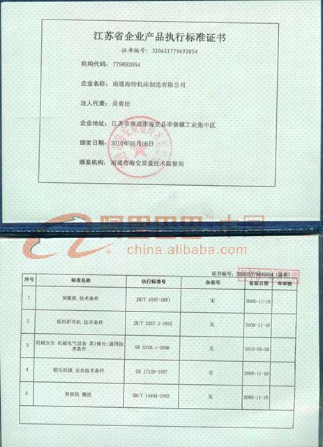產品執行標準證書
