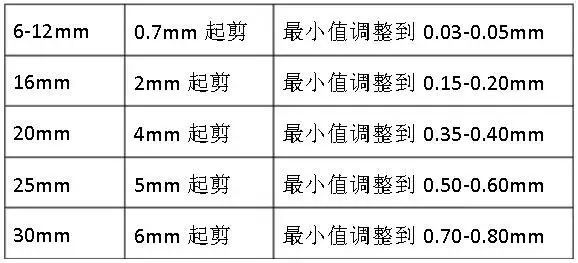 1、 液壓剪板機(jī)間隙調(diào)整 利用剪切角變大,變小兩個按鈕,把機(jī)床上刀片放置與下刀片兩端至重疊3-5mm即可,最小間隙值調(diào)整 附表: